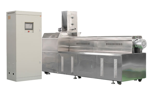The development of extruder has gone through a process from single-screw extruder to twin-screw extruder to today's triple-screw extruder. The emergence of twin-screw not only improves production efficiency, but also expands the scope of application of extruders; now the birth of triple-screw has further improved production efficiency, but also allowed extruders to enter more subdivided production fields, and produce more refined products. The twin-screw extruder has two screws with the barrel to form an extrusion system, while the three-screw extruder is assembled by three screws in the barrel. Although only one screw is added, the arrangement and combination of the three screws can be arranged in parallel, and can also be arranged in a right triangle or inverted triangle. The different arrangement of the screws directly affects the performance of the extruder. As a leader in the field of food production, our company's three screw extruder has excellent performance in the production of puffed snacks and pet food, and can improve product quality with high productivity.