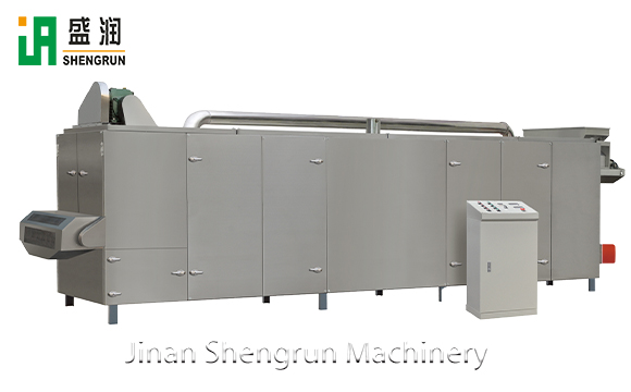 3. Twin-screw food extruder: The high pressure and high temperature generated by the screw and barrel extrusion and the heating ring change the properties of the material and ripen and expand the material, while killing harmful bacteria. Then mold the material into various food shapes through the mold.